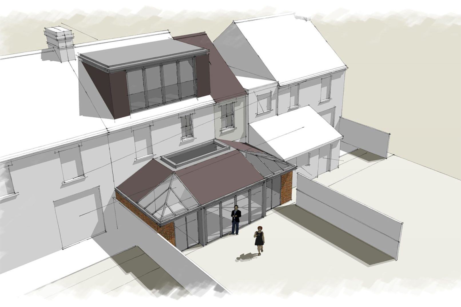 Our client in Headington, Oxford asked us to create a design to maximise the development of the house but minimising the impact on neighbours. We agreed that the front of the house should keep a fairly traditional look. The brief for the rear extension design was to maximise light, so we used plenty of glass, but without it feeling like a conservatory.